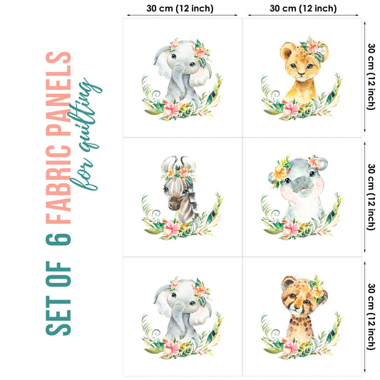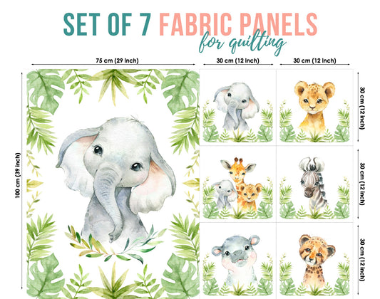 Cute Jungle Safari Elephant Fabric Panels for Quilting