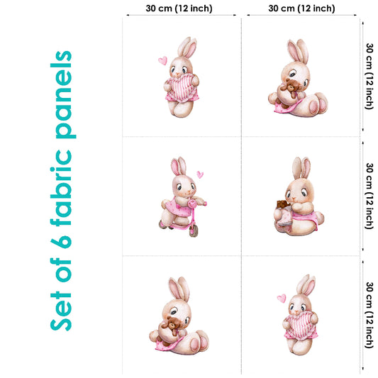 Cute Baby Bunny&Heart Fabric Panels for Quilting