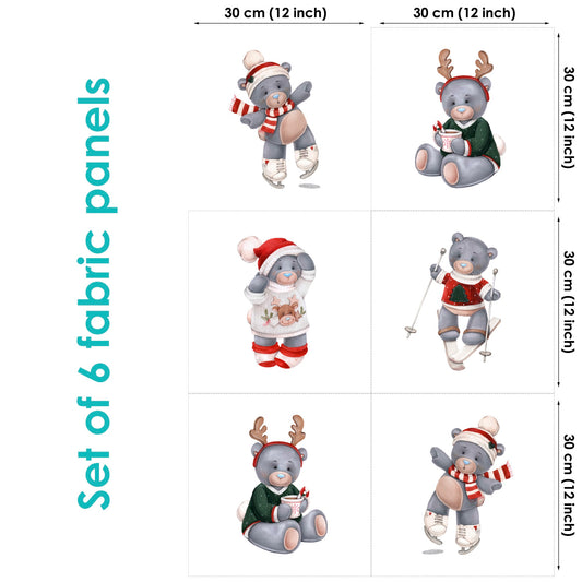Christmas Bear&Skates Fabric Panels for Quilting