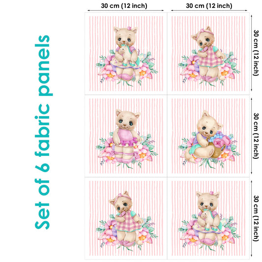 Cute Kitty&Flowers Fabric Panels for Quilting